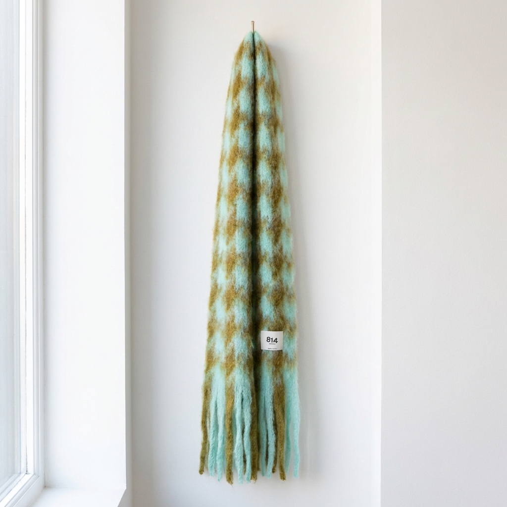 Etiquetas: bufanda ezcaray, Bufanda mohair pata de gallo, verde pálido