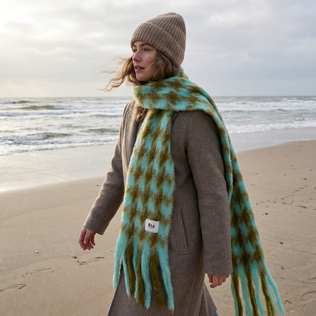 Acabada la temporada de invierno, solo tienes que peinar la bufanda con un cepillo de púa dura en la dirección del pelo para mantener su aspecto suave y esponjoso.
